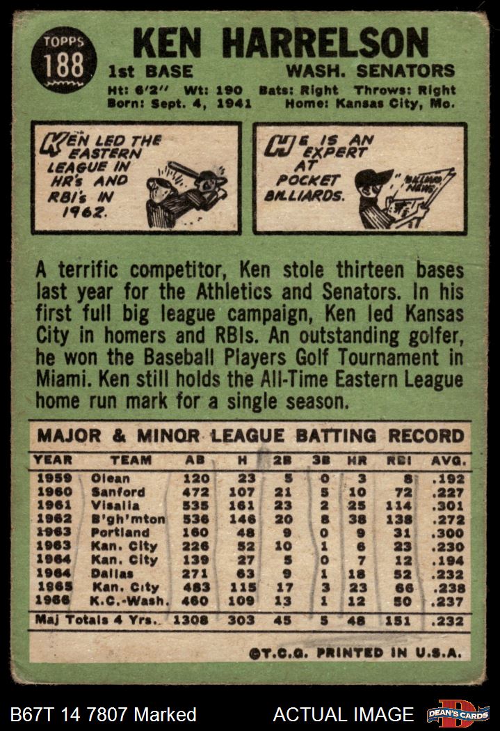 1967 Topps #188 Ken Harrelson 1 - POOR
