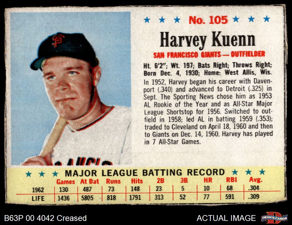 1963 Post Cereal #105 Harvey Kuenn Front Thumbnail