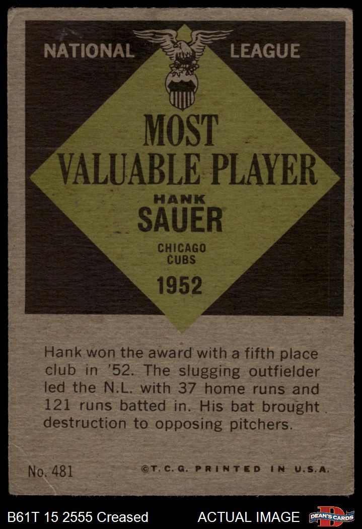 1961 Topps #481 Most Valuable Player