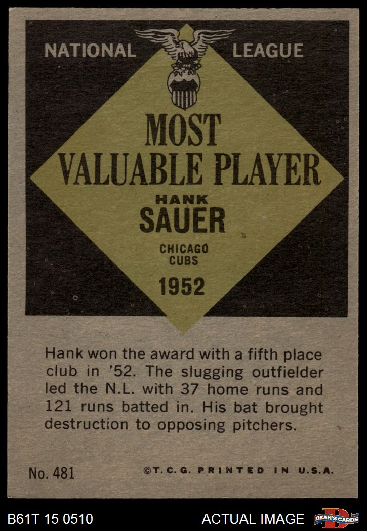 1961 Topps #481 - Hank Sauer Most Valuable Player 6 - EX/MT