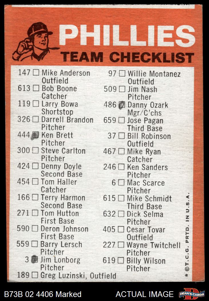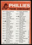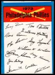 1973 Topps Blue Team Checklist Philadelphia Phillies