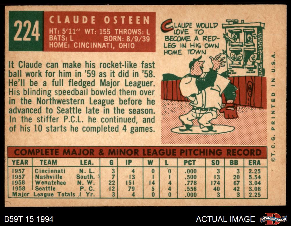 1959 Topps #224 Claude Osteen 4 - VG/EX