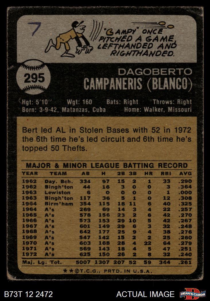 1973 Topps #295 Bert Campaneris 1 - POOR