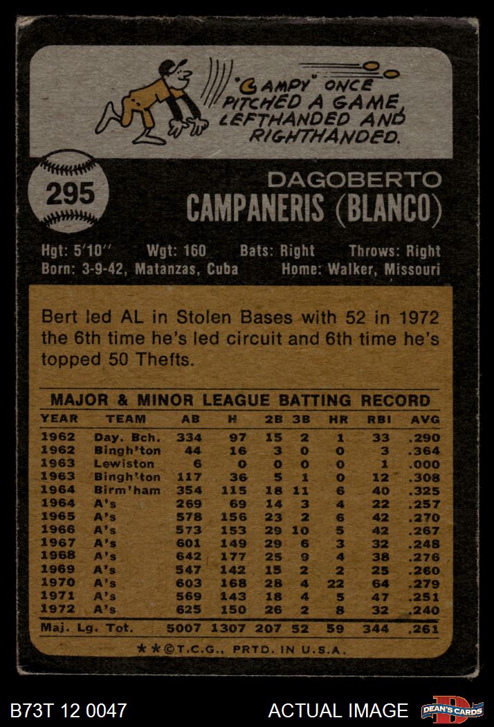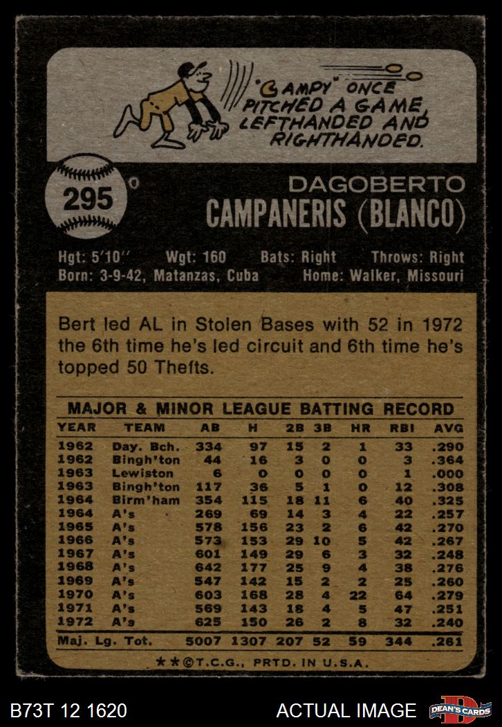 1973 Topps #295 Bert Campaneris 2 - GOOD