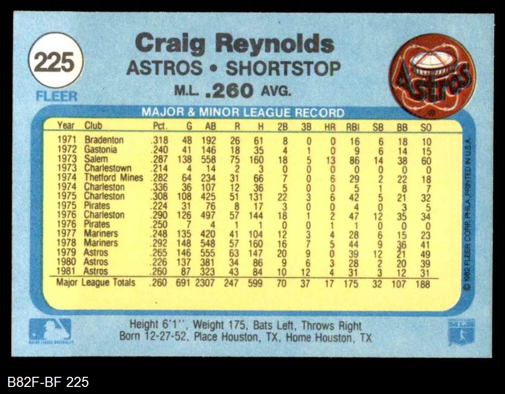 1982 Fleer #225 Craig Reynolds