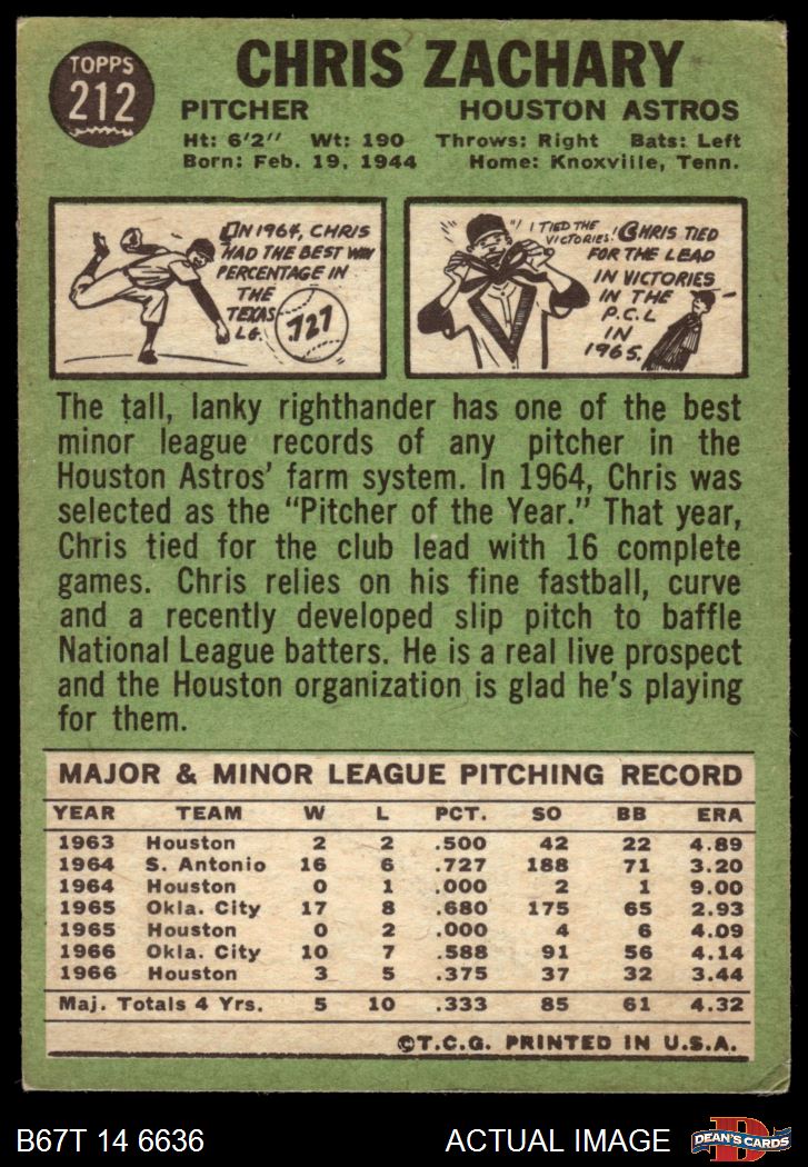 1967 Topps #212 Chris Zachary 4 - VG/EX