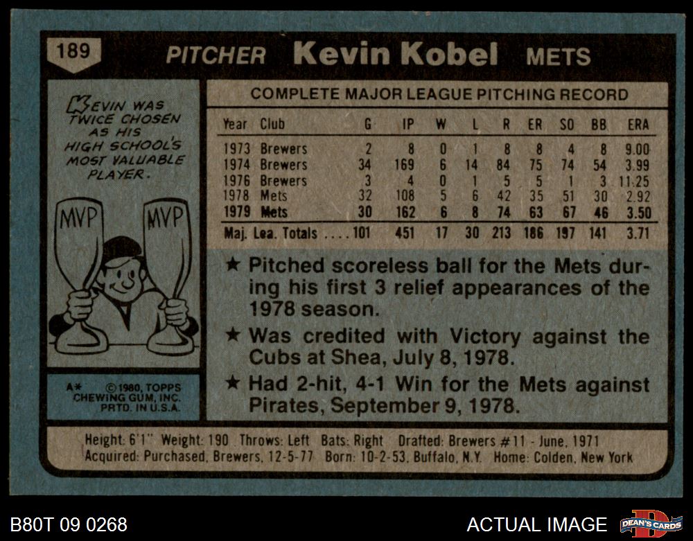 1980 Topps #189 Kevin Kobel