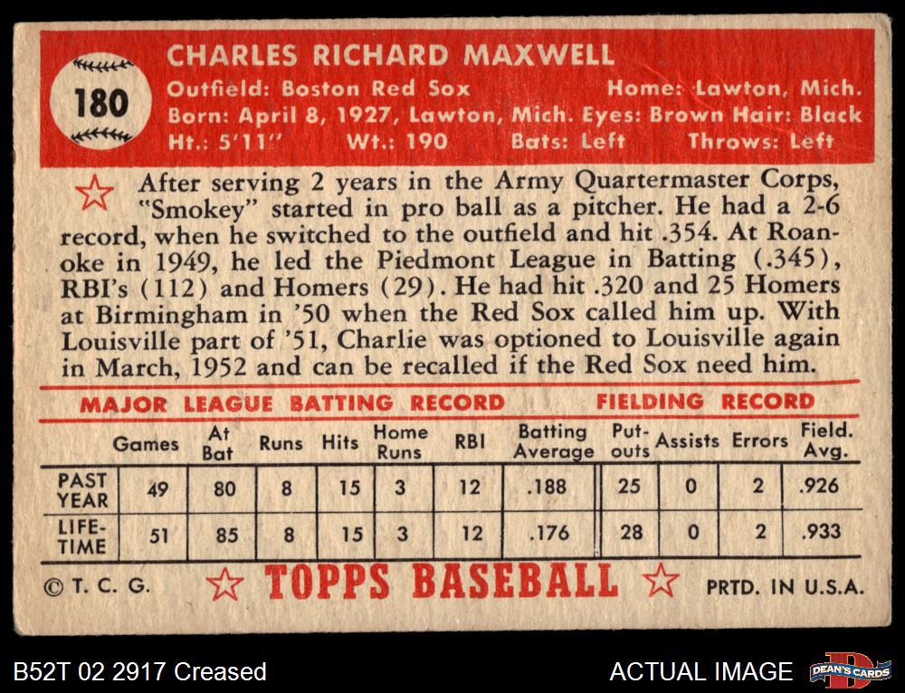 1952 Topps #180 CRM Charley Maxwell 2 - GOOD