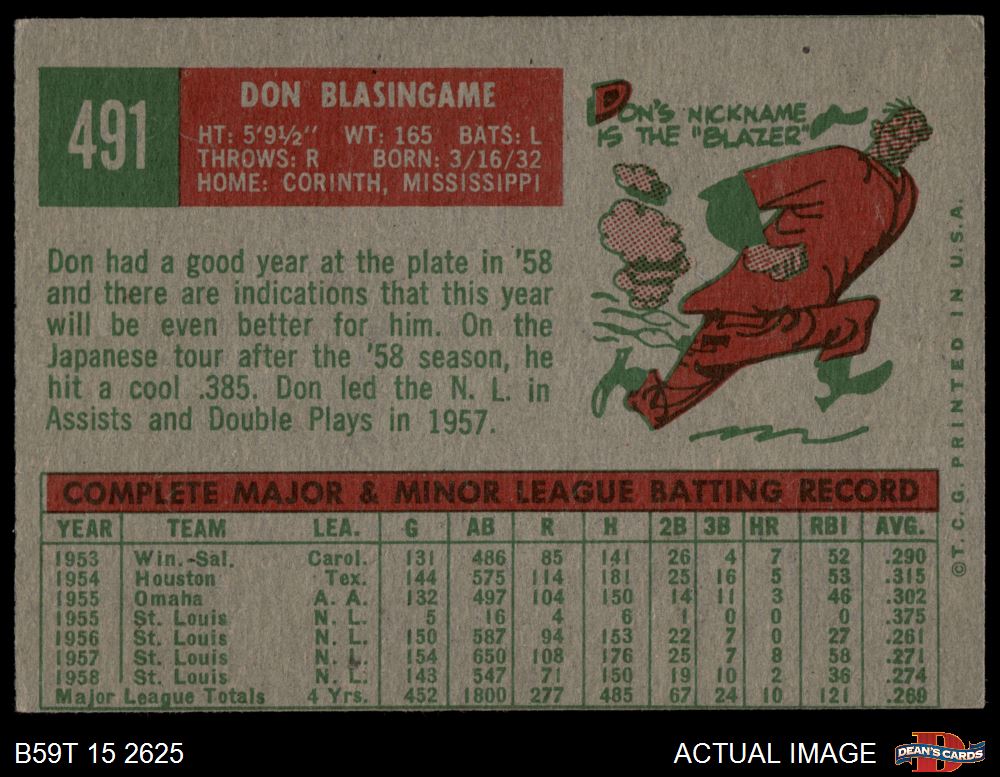 1959 Topps #491 Don Blasingame 3 - VG