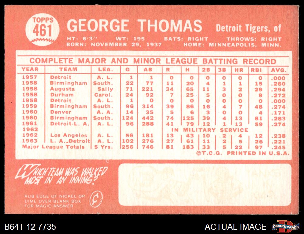 1964 Topps #461 George Thomas