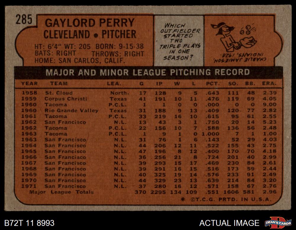 1972 Topps #285 Gaylord Perry
