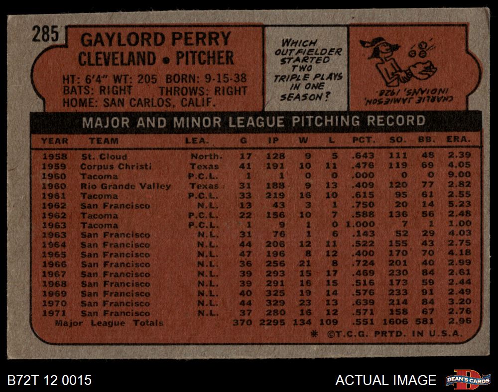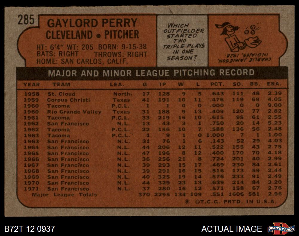1972 Topps #285 Gaylord Perry 4 - VG/EX