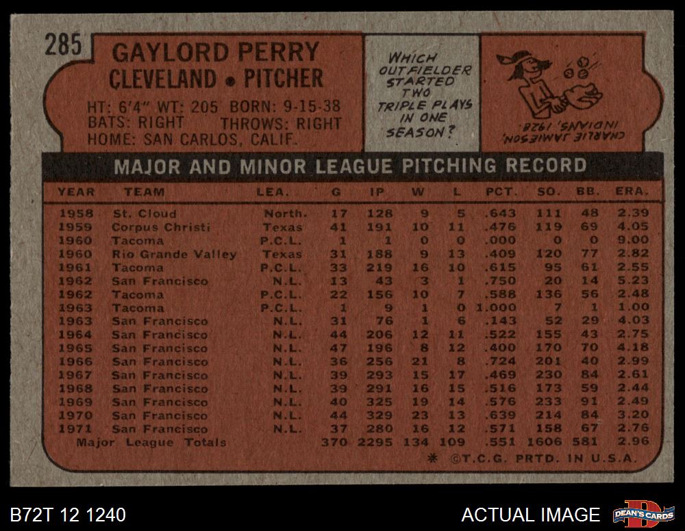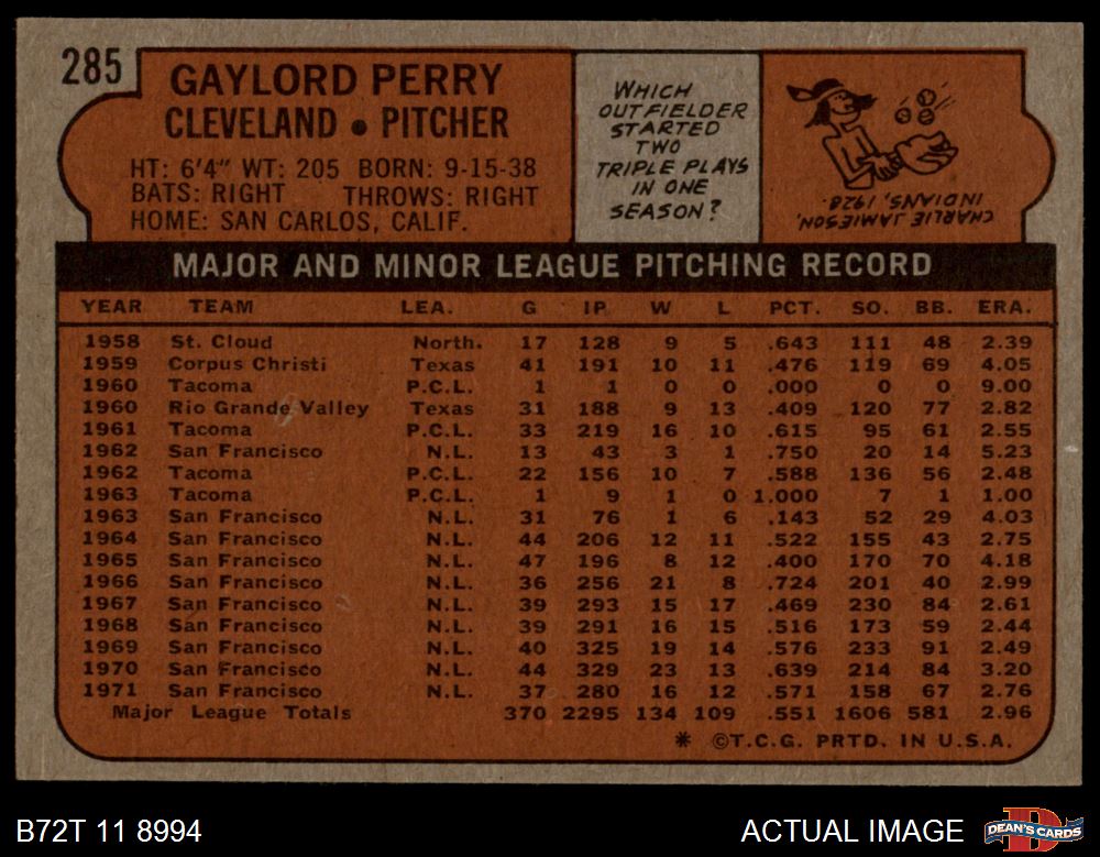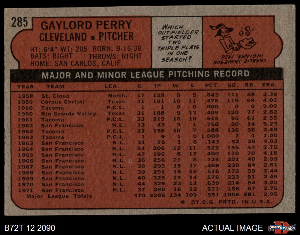 1972 Topps #285 Gaylord Perry 6 - EX/MT