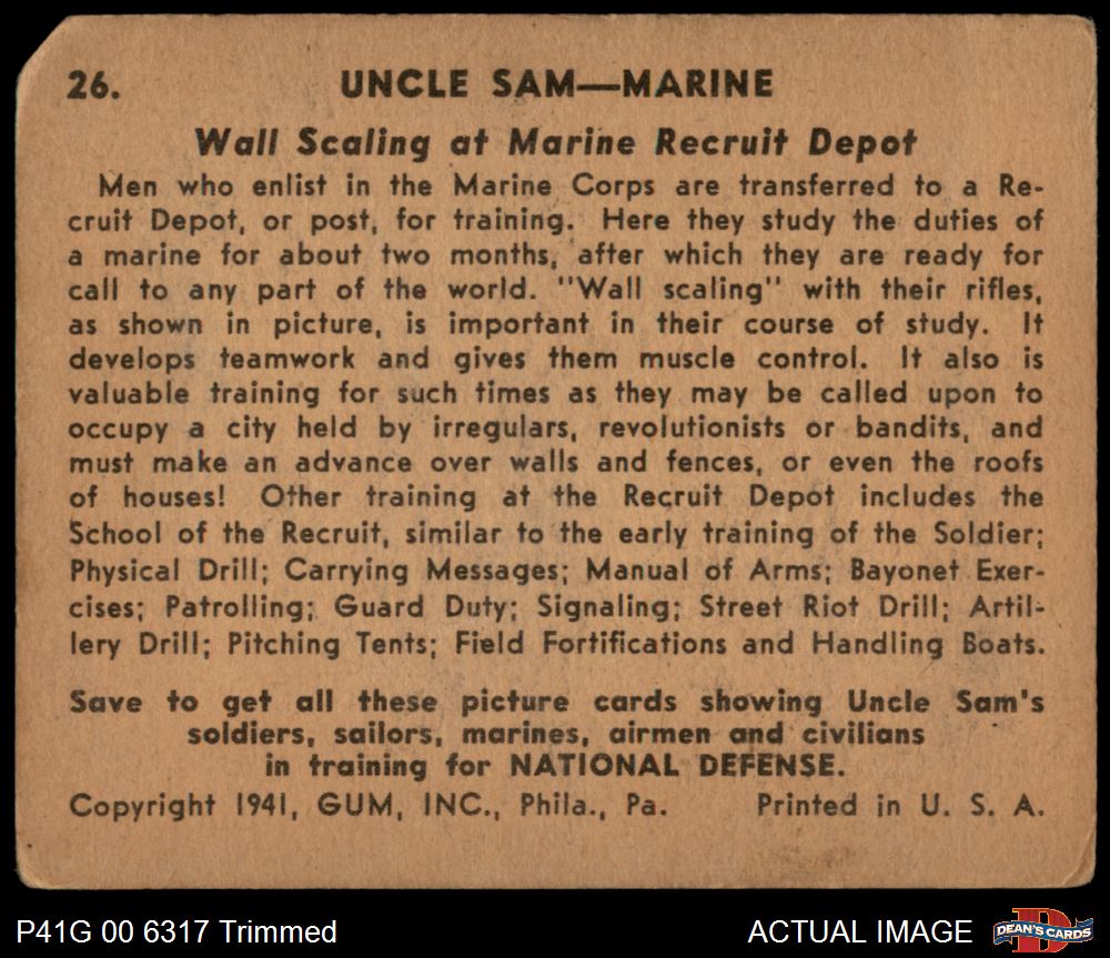 1941 Uncle Sam #26 Wall Scaling At Marine Recruit Depot AUTHENTIC