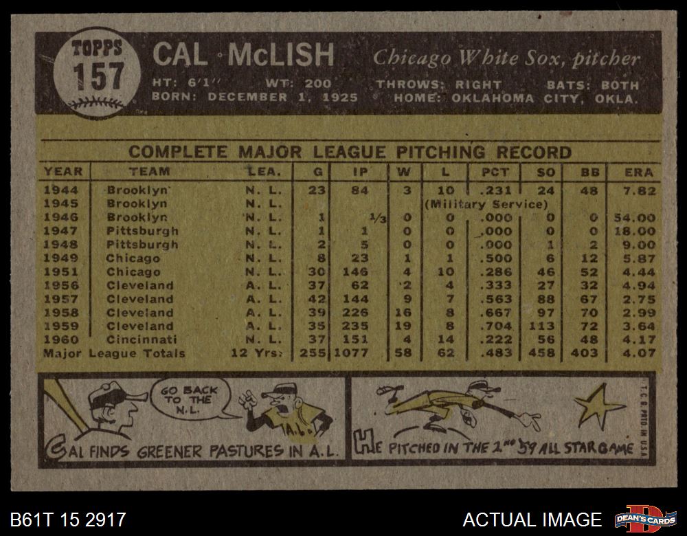 1961 Topps #157 Cal McLish 4 - VG/EX