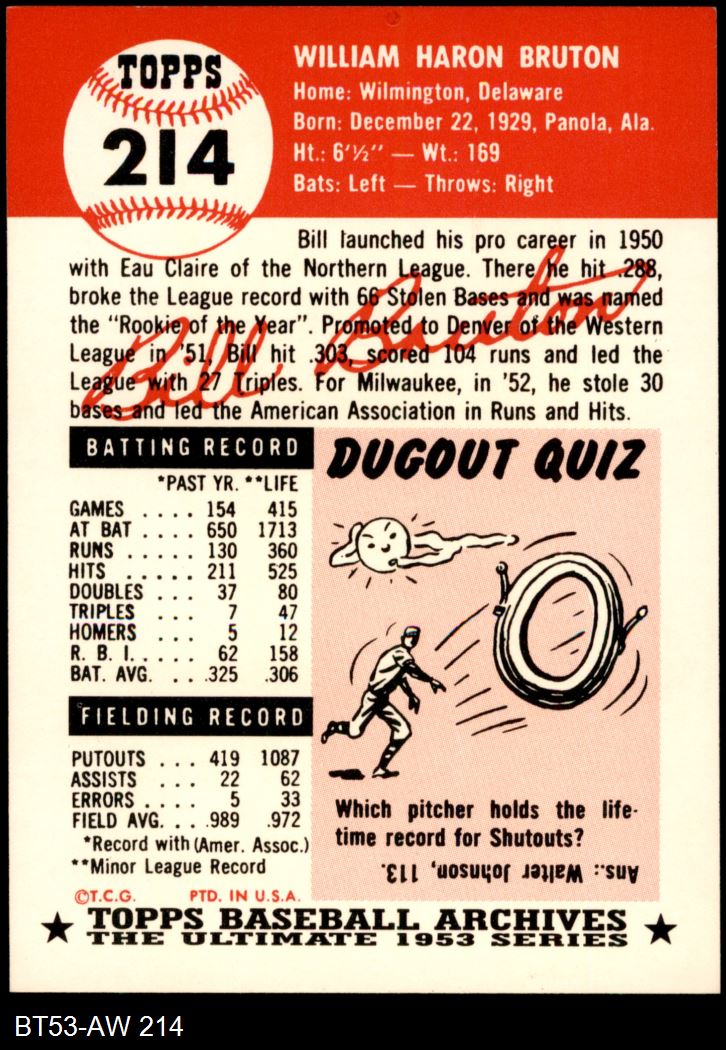 1953 Topps Archives #214 Bill Bruton 8 - NM/MT