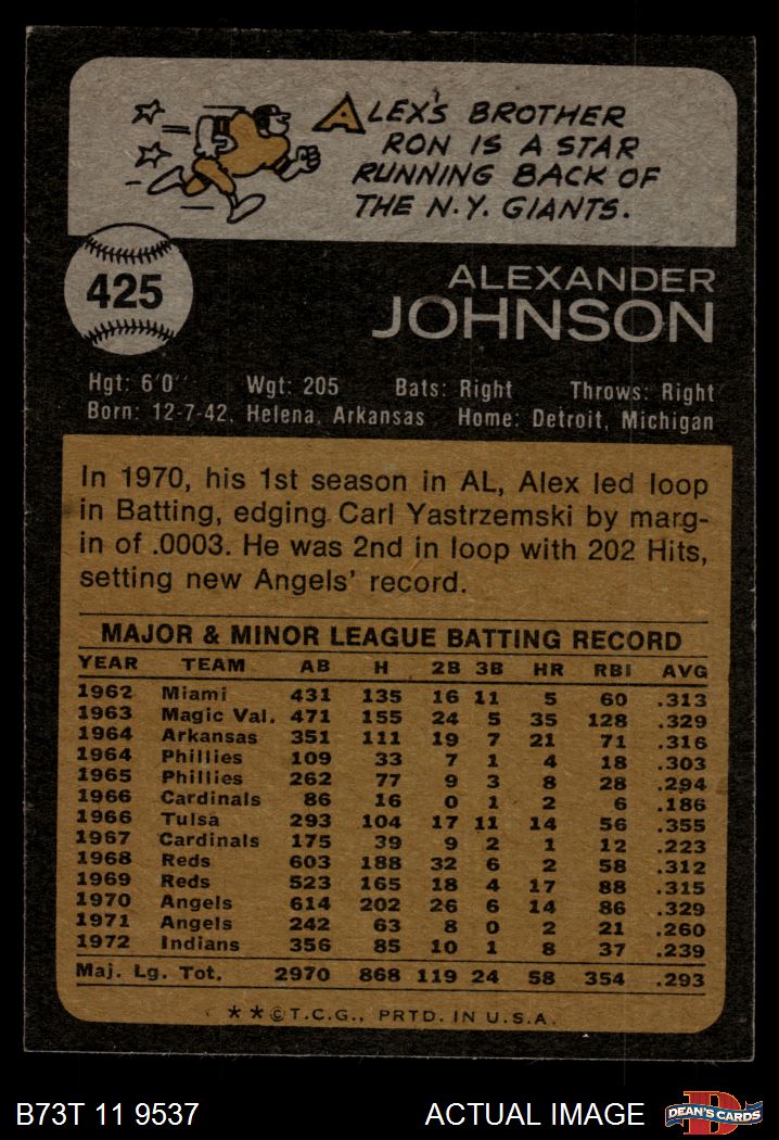 1973 Topps #425 Alex Johnson