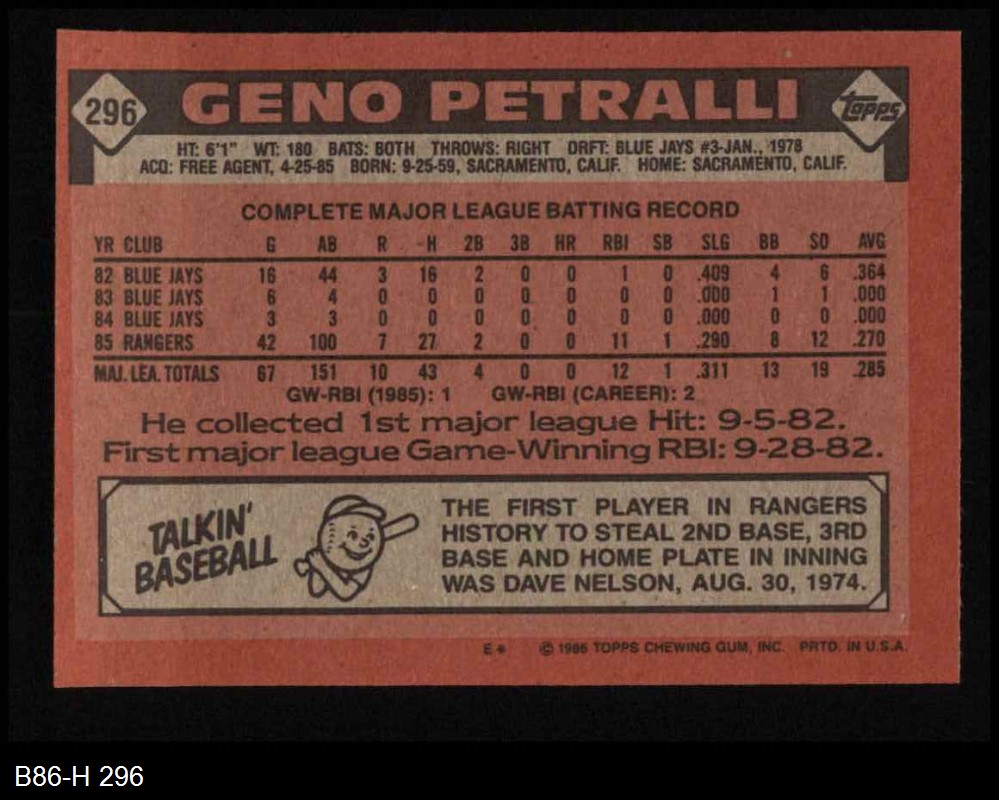 1986 Topps Baseball Cards (4,656 available)1986 Topps Rangers (374 available)
