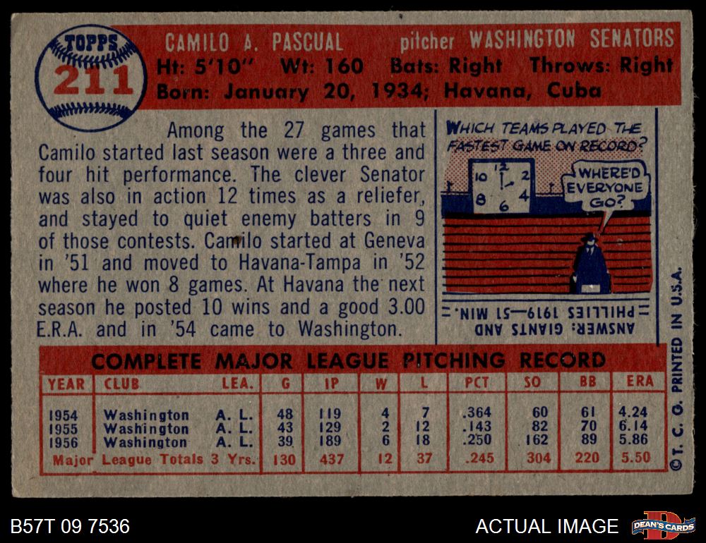 1957 Topps Baseball Cards (5,000 available)1957 Topps Senators (380 available)