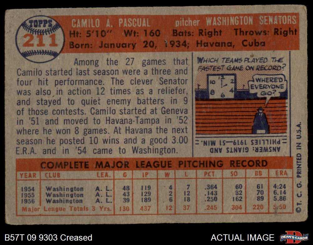 1957 Topps Baseball Cards (5,906 available)1957 Topps Senators (423 available)