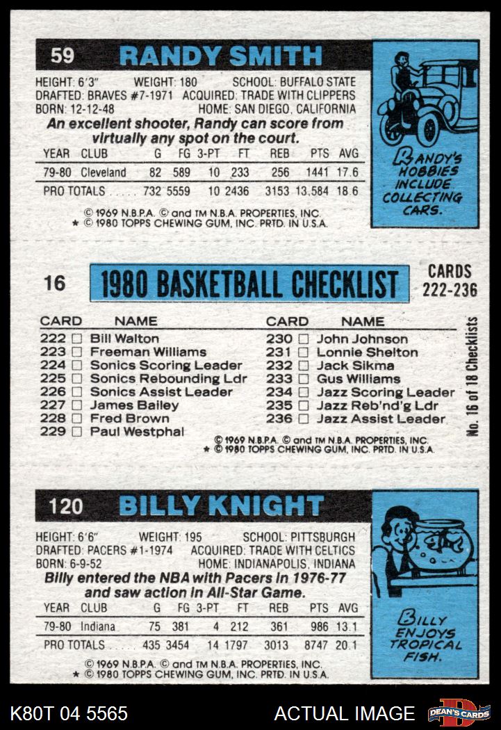 1980 Topps - Billy Knight / Paul Westphal / Randy Smith 120 / 16 / 59 6 - EX/MT