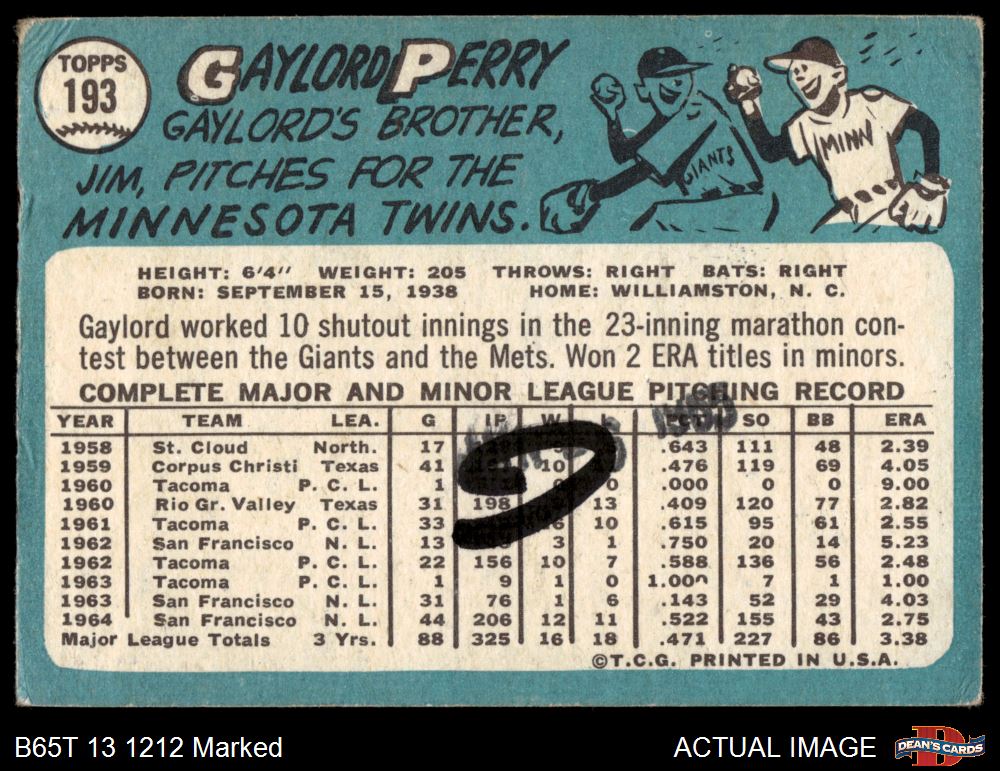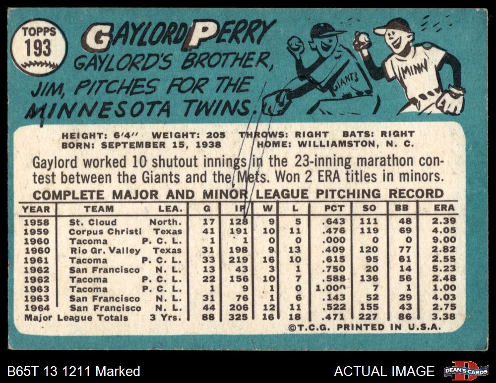 1965 Topps #193 Gaylord Perry 1.5 - FAIR