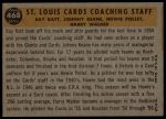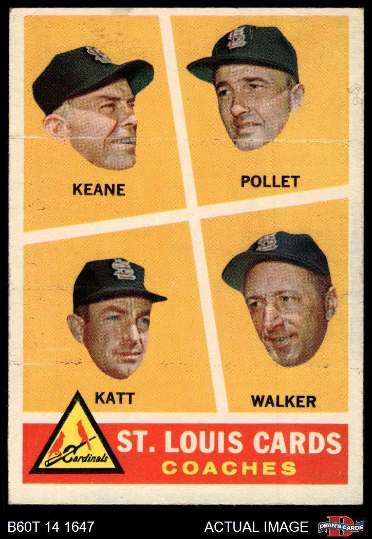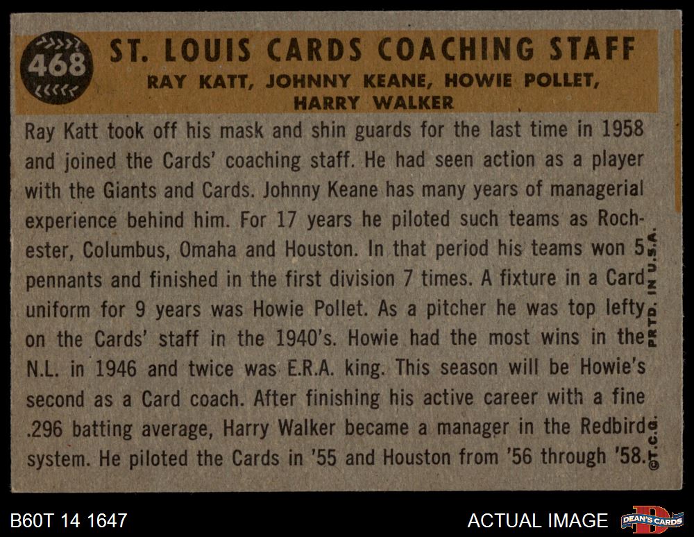 1960 Topps #468 - Johnny Keane / Howie Pollet / Ray Katt / Harry Walker Cardinals Coaches 3 - VG