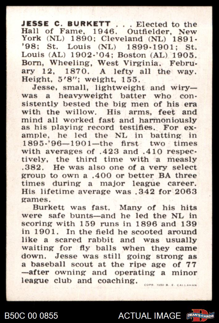 1950 Callahan Hall of Fame Jesse Burkett 7.5 - NM+