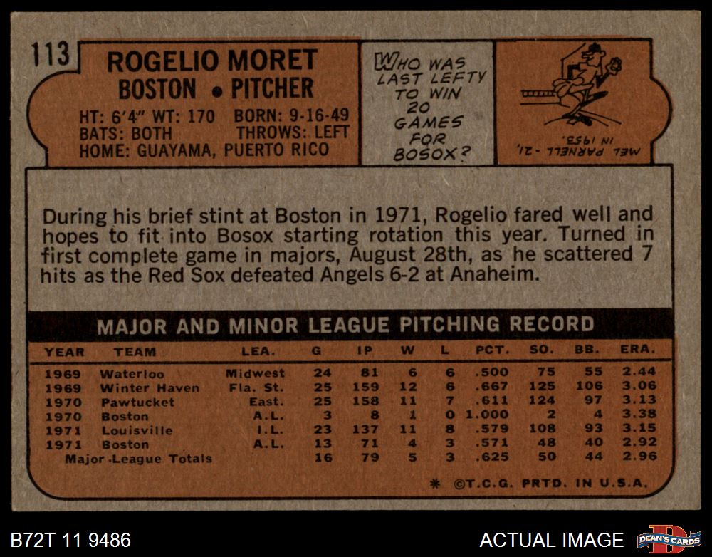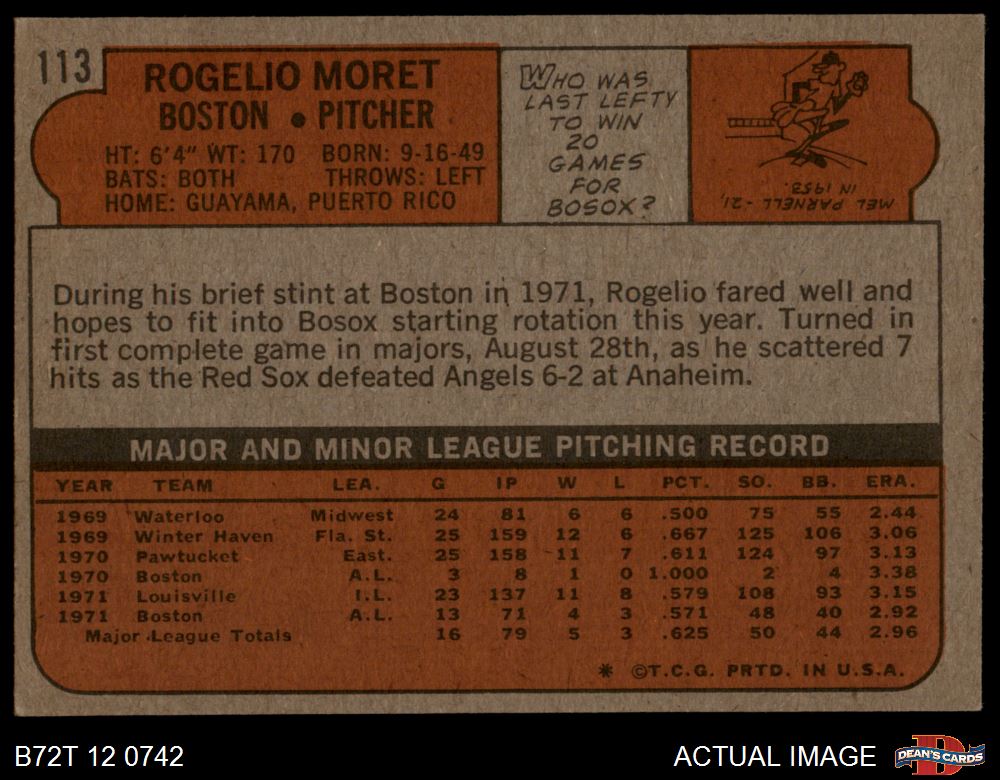 1972 Topps #113 Rogelio Moret 5 - EX