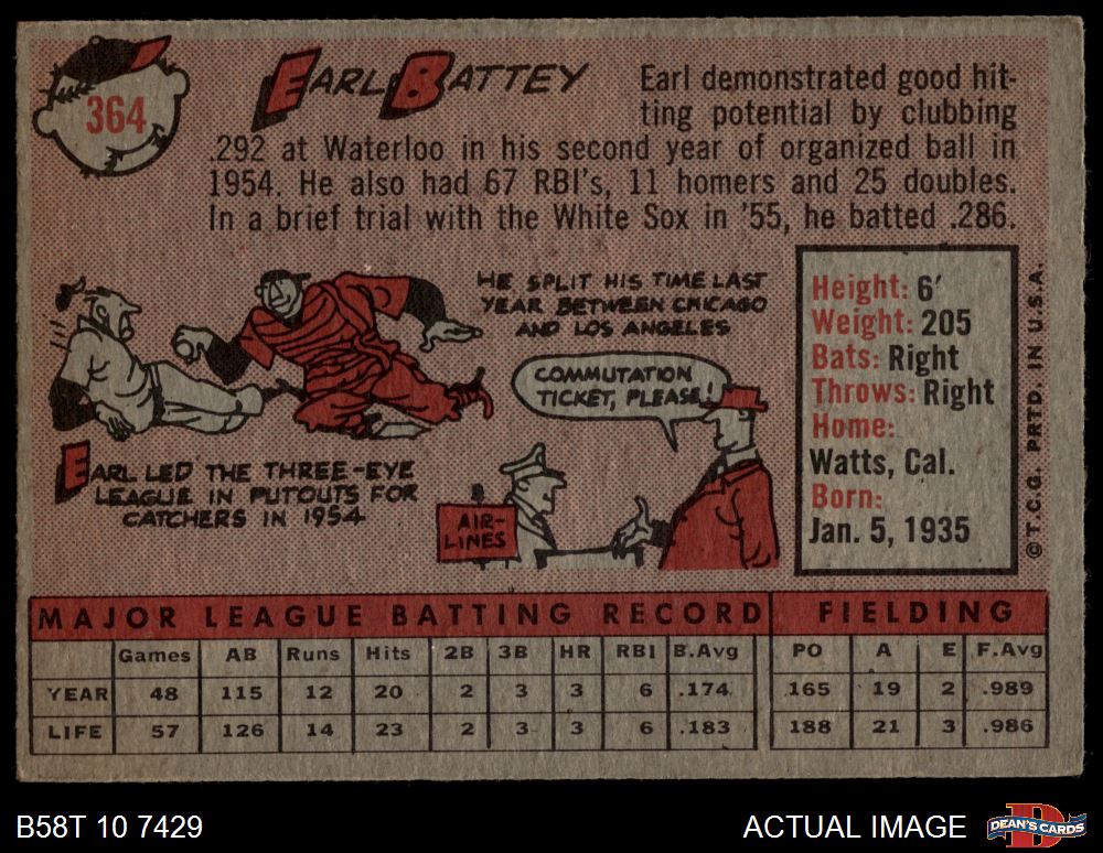 1958 Topps #364 Earl Battey