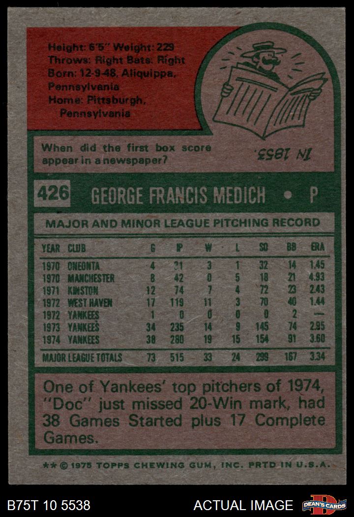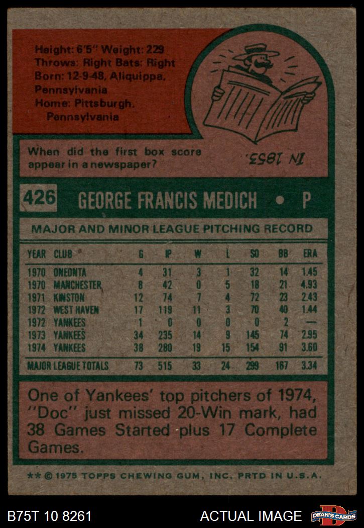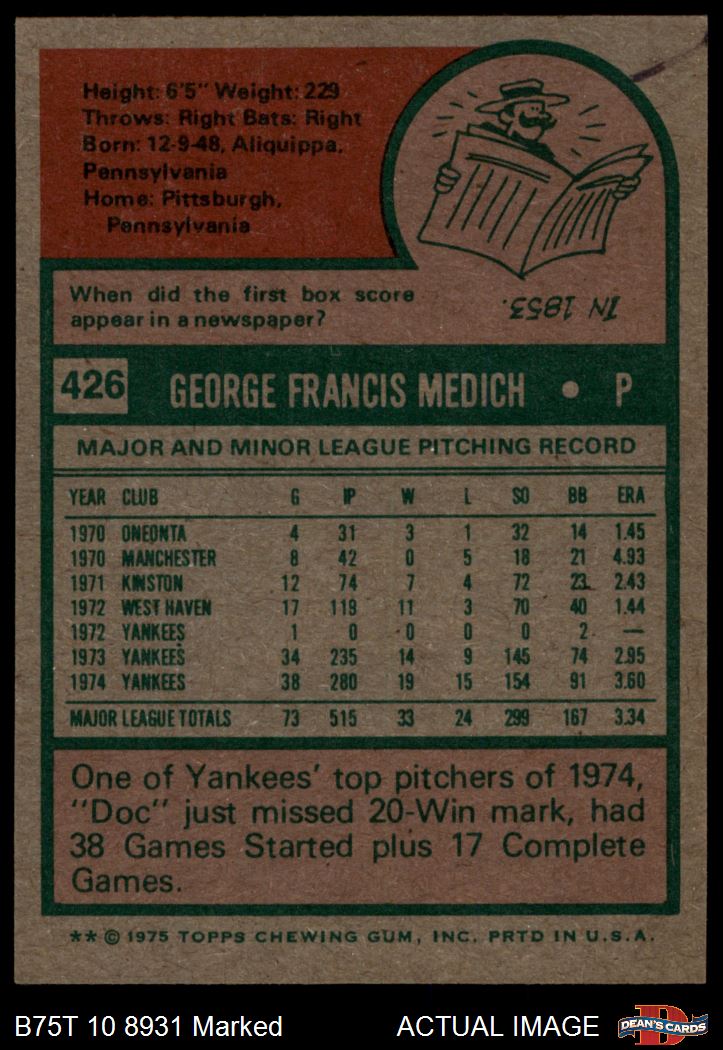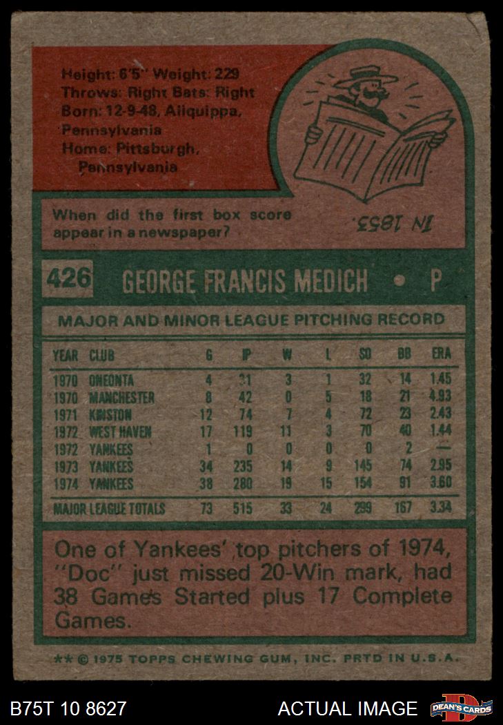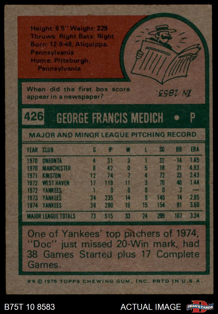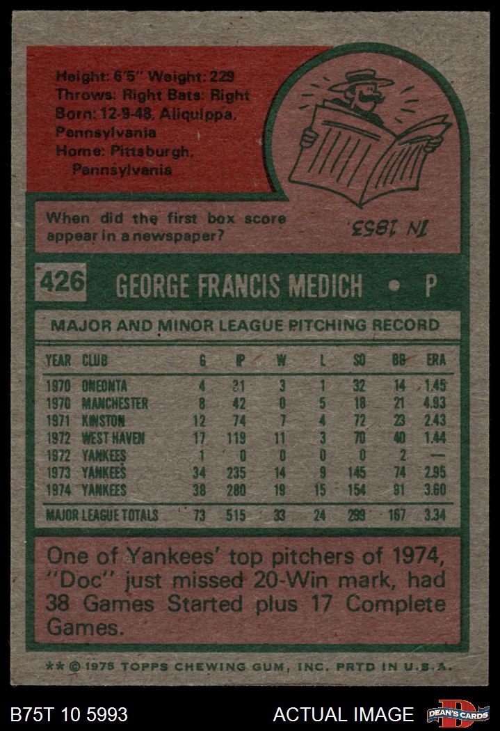 1975 Topps #426 Doc Medich