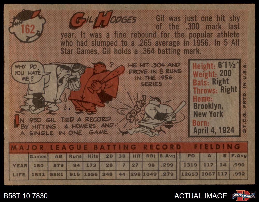1958 Topps #162 Gil Hodges 4 - VG/EX