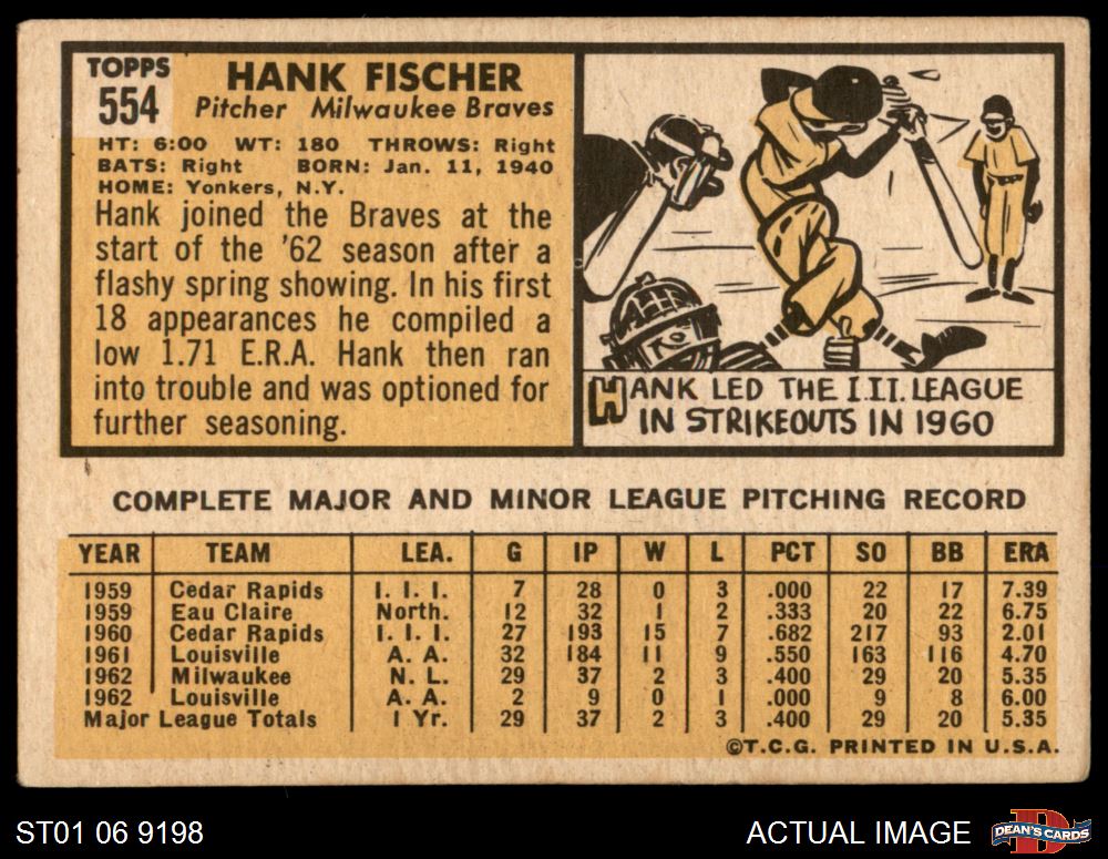 1963 Topps #554 Hank Fischer 3.5 - VG+