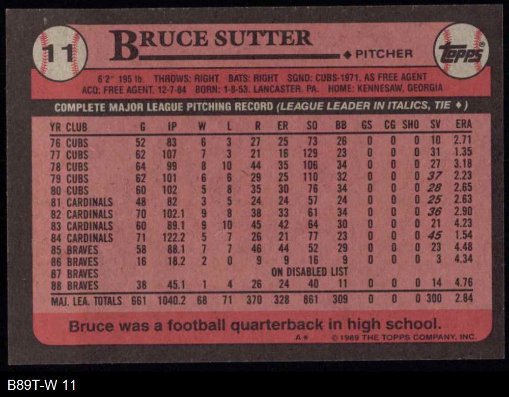 1989 Topps #11 Bruce Sutter 8 - NM/MT
