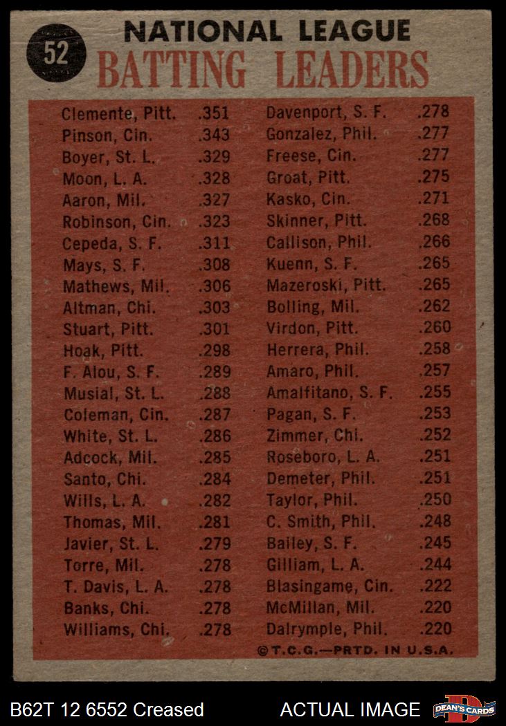 1962 Topps Baseball Cards (13,863 available)1962 Topps Pirates / Cardinals / Reds / Dodgers (29 available)