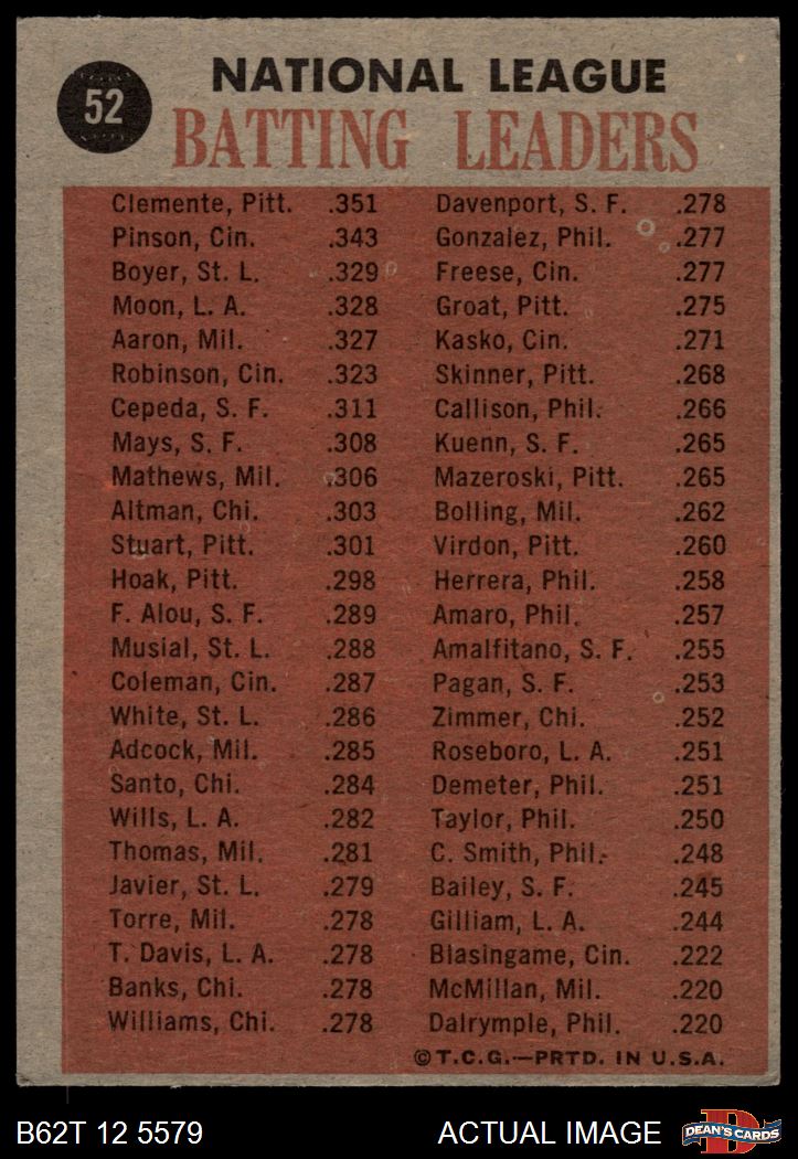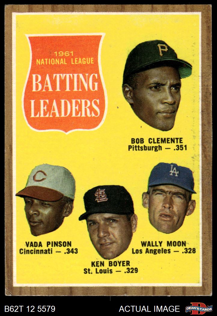 1962 Topps #52 - Roberto Clemente / Vada Pinson / Ken Boyer / Wally Moon NL Batting Leaders 2.5 - GD+