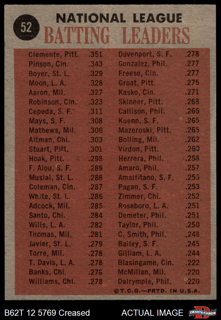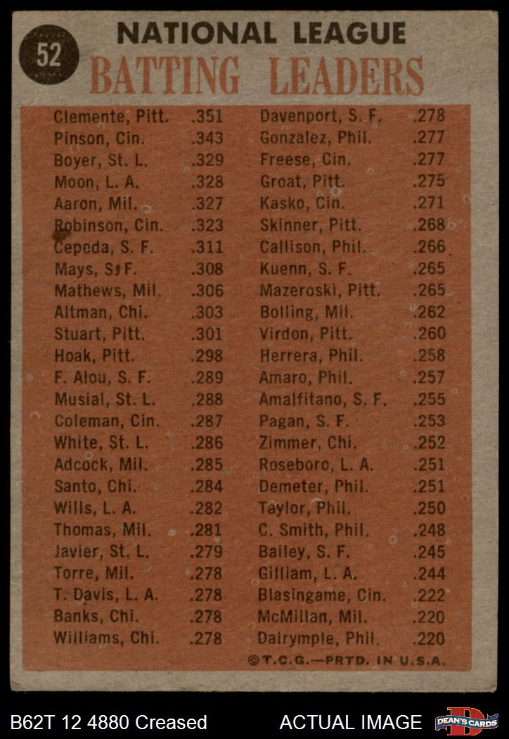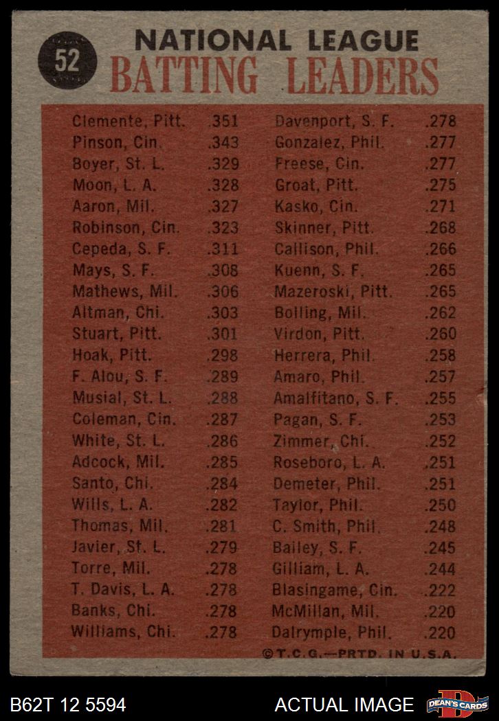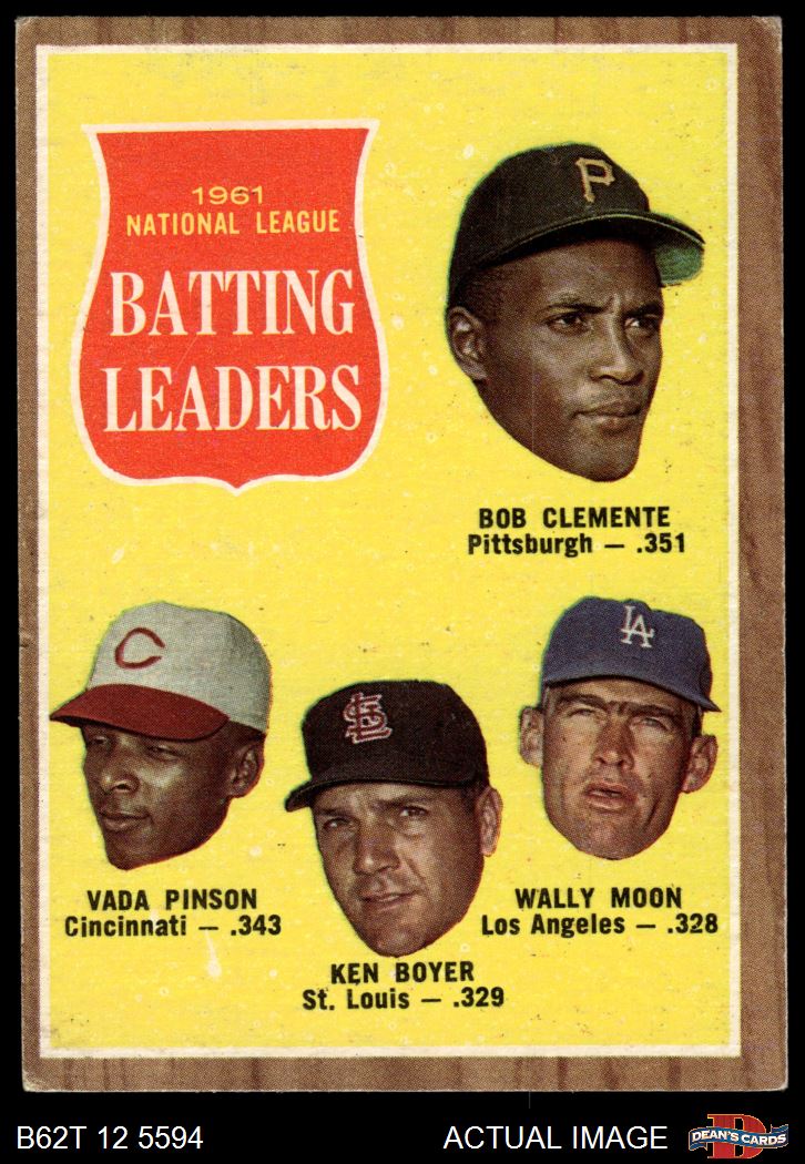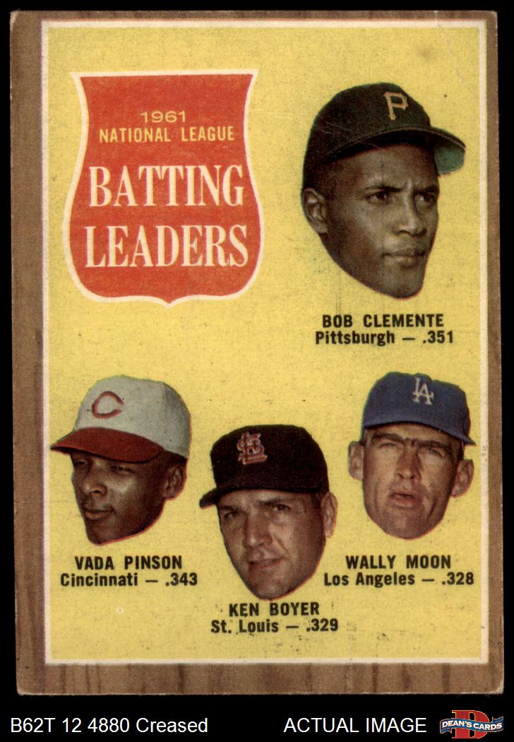 1962 Topps #52 - Roberto Clemente / Vada Pinson / Ken Boyer / Wally Moon NL Batting Leaders 3 - VG