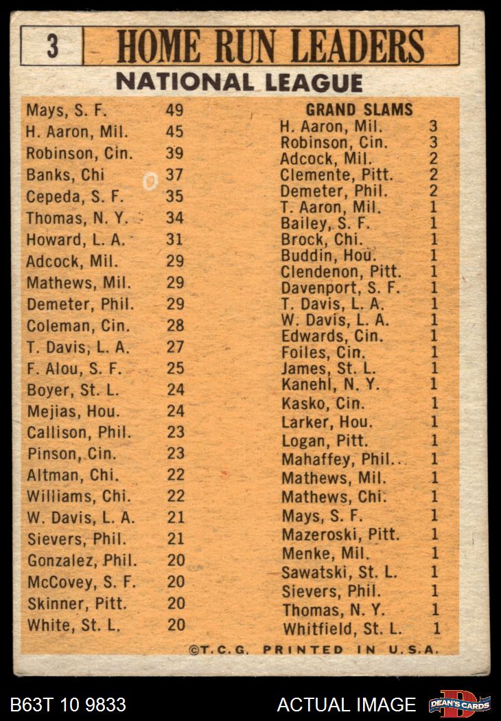 1963 Topps Baseball Cards (9,337 available)1963 Topps Giants / Reds / Braves / Cubs (12 available)