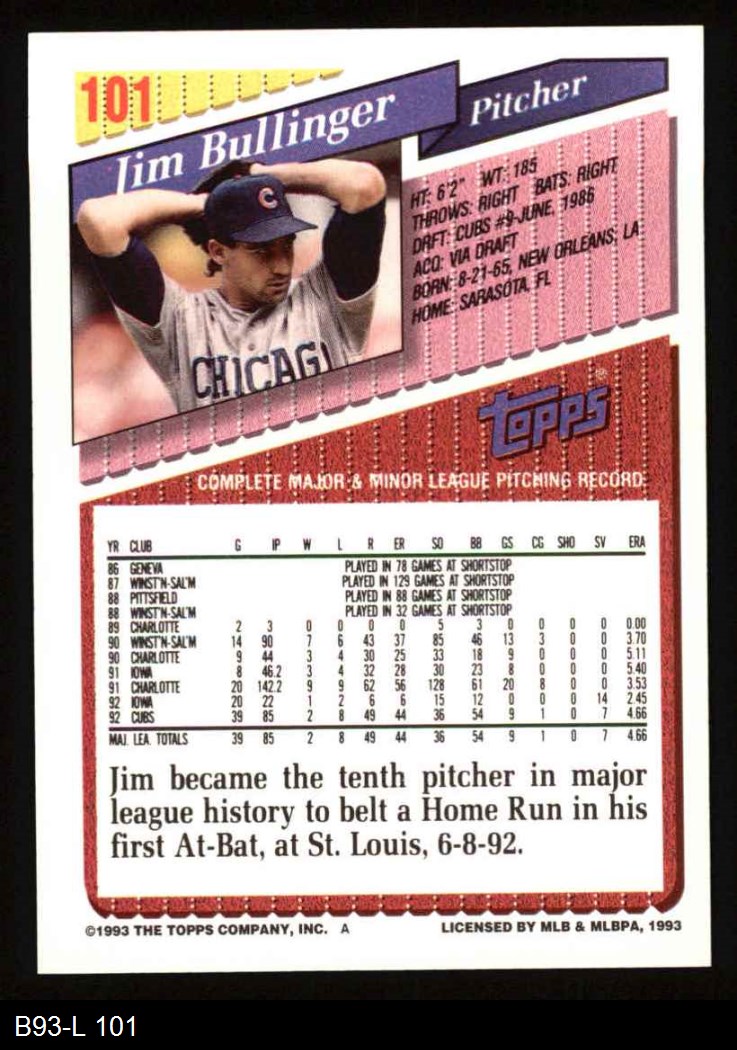 1993 Topps #101 Jim Bullinger