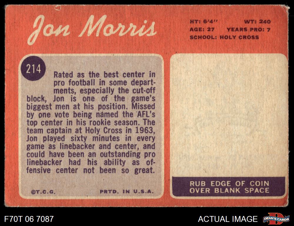 1970 Topps #214 Jon Morris 1.5 - FAIR