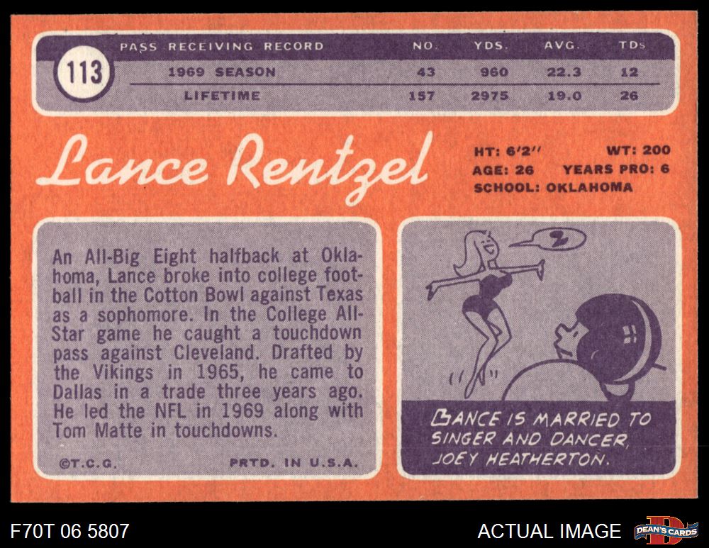 1970 Topps #113 RED Lance Rentzel 8 - NM/MT