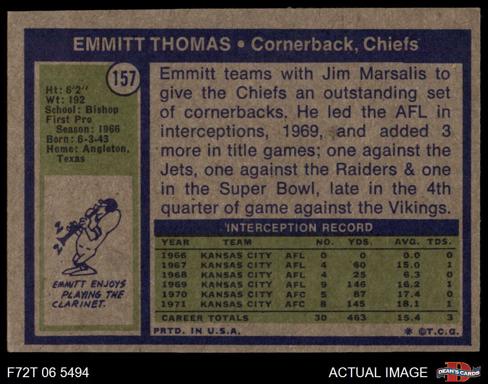 1972 Topps #157 Emmitt Thomas 4 - VG/EX