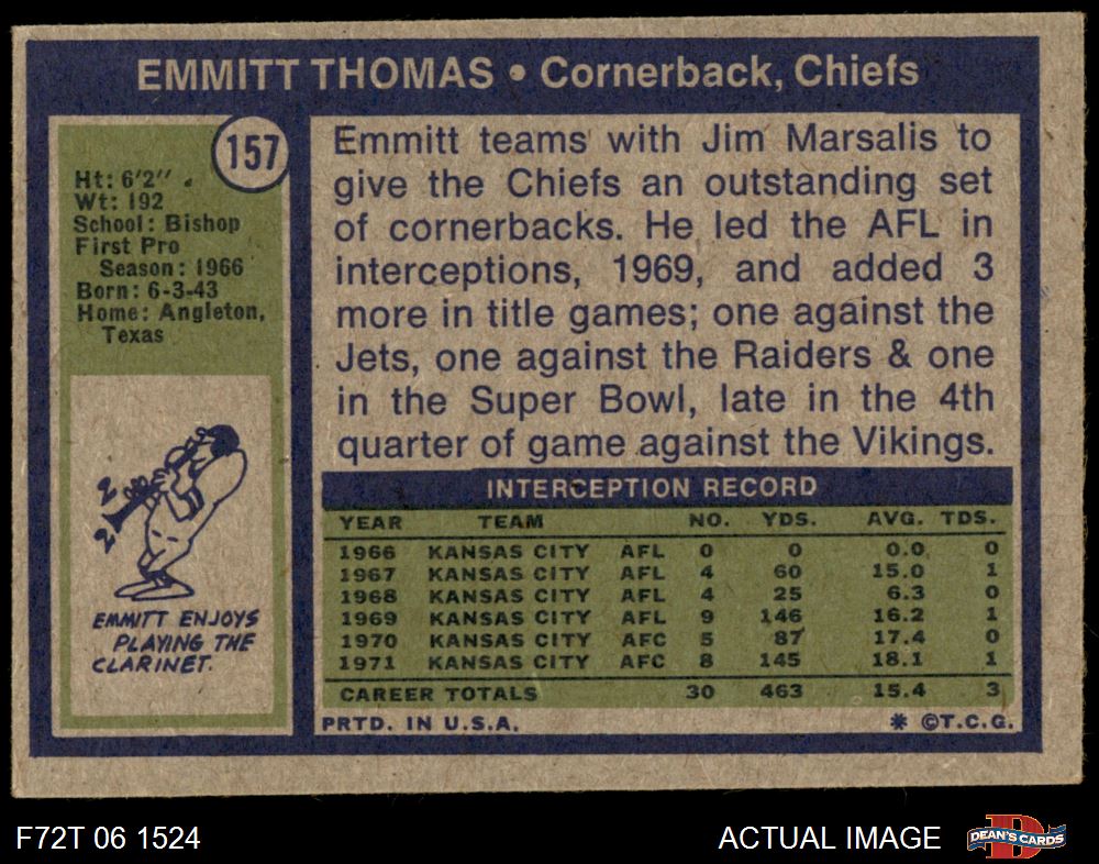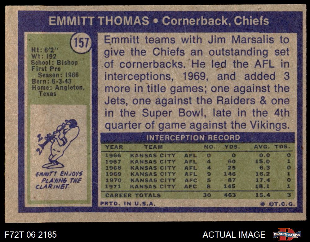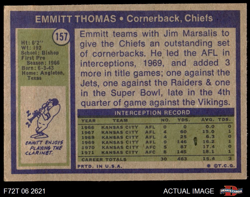 1972 Topps #157 Emmitt Thomas 5 - EX