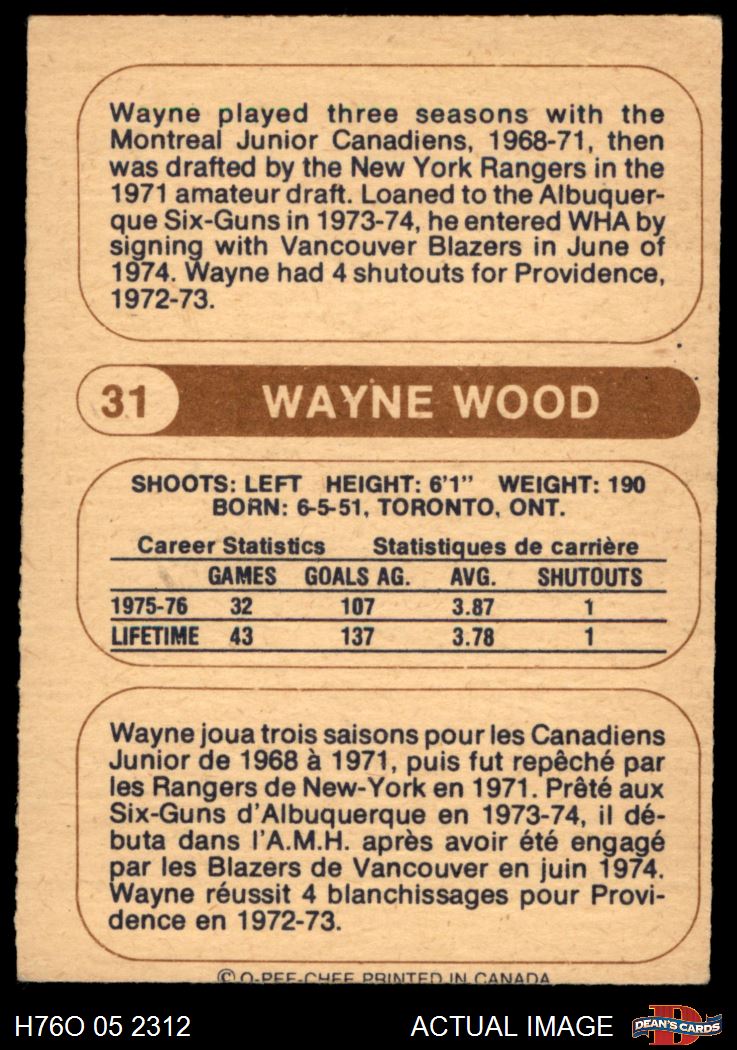 1976 O-Pee-Chee WHA #31 Wayne Wood 4 - VG/EX