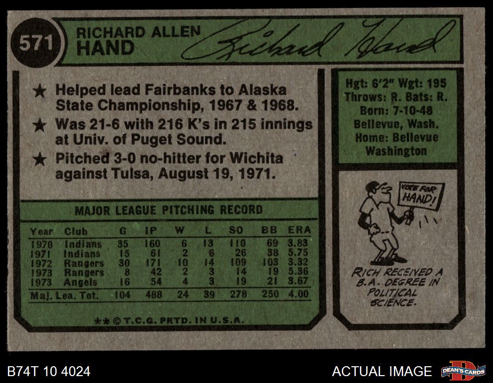 1974 Topps #571 Rich Hand 4 - VG/EX