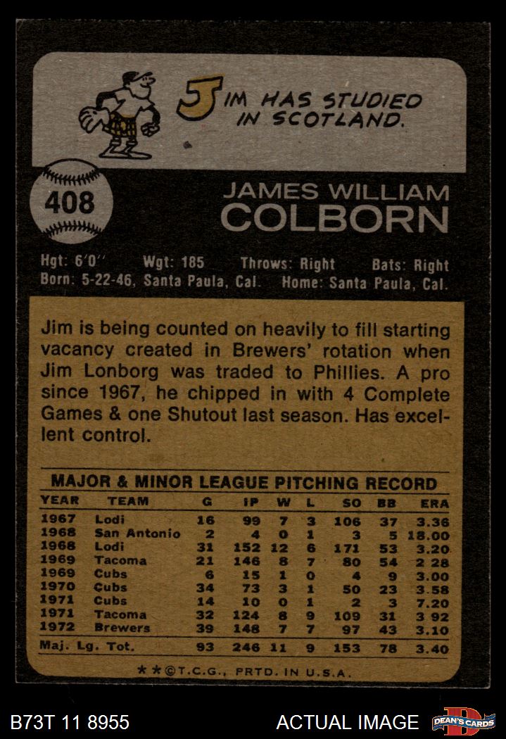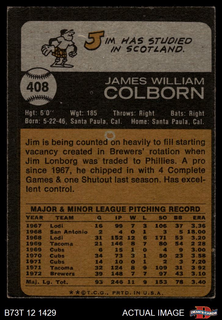 1973 Topps #408 Jim Colborn 4 - VG/EX
