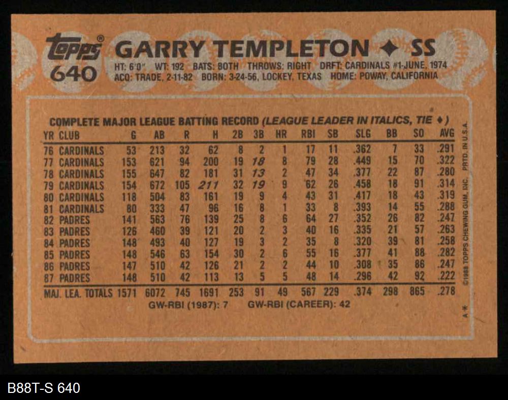 1988 Topps #640 Garry Templeton