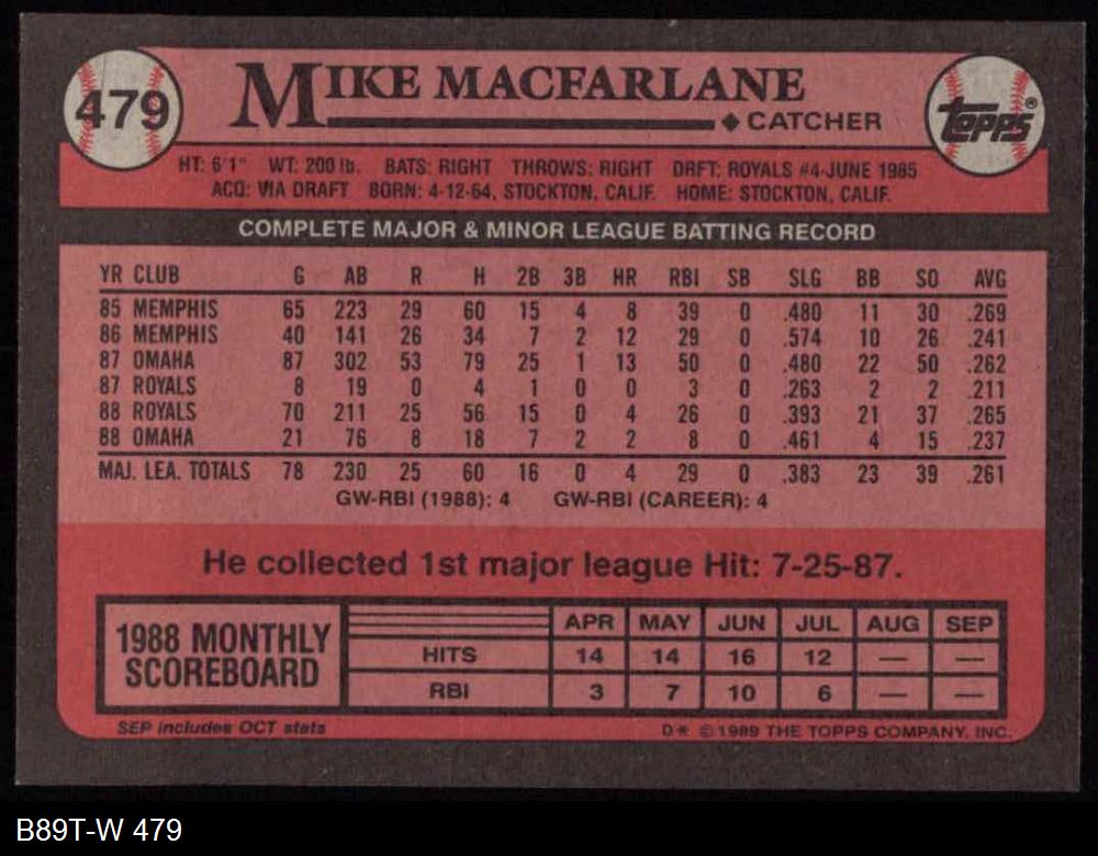 1989 Topps #479 Mike Macfarlane 8 - NM/MT