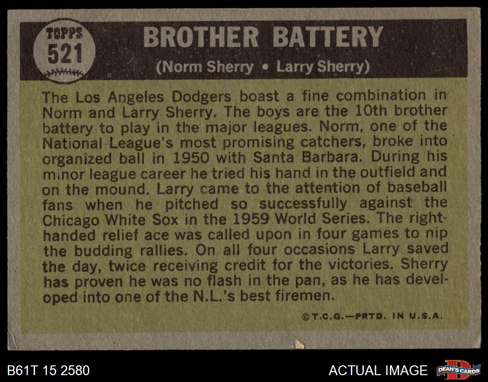 1961 Topps #521 - Norm Sherry / Larry Sherry Brother Battery 5 - EX