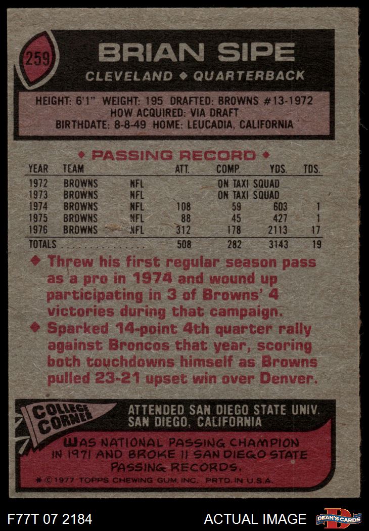 1977 Topps #259 Brian Sipe 3 - VG